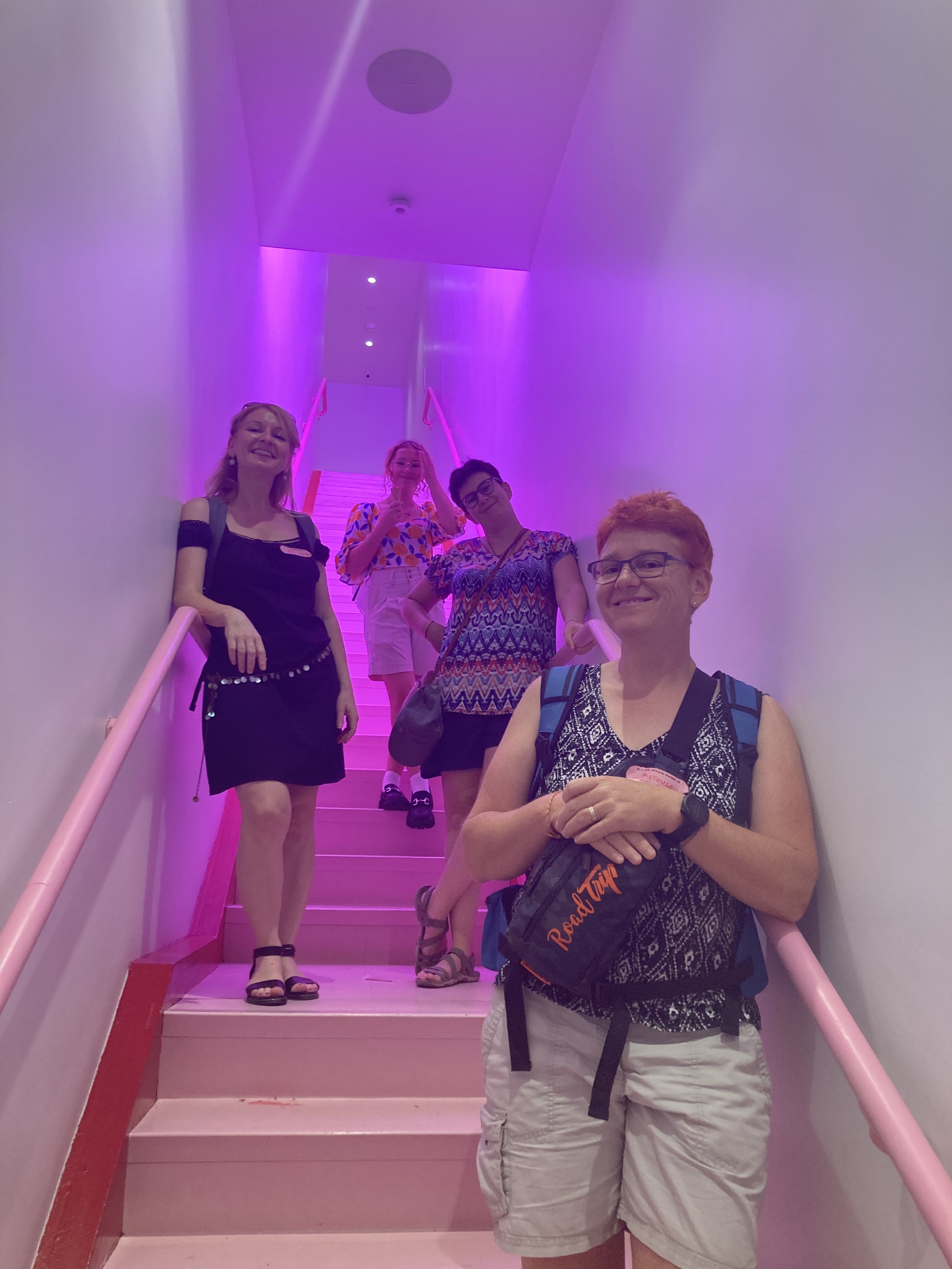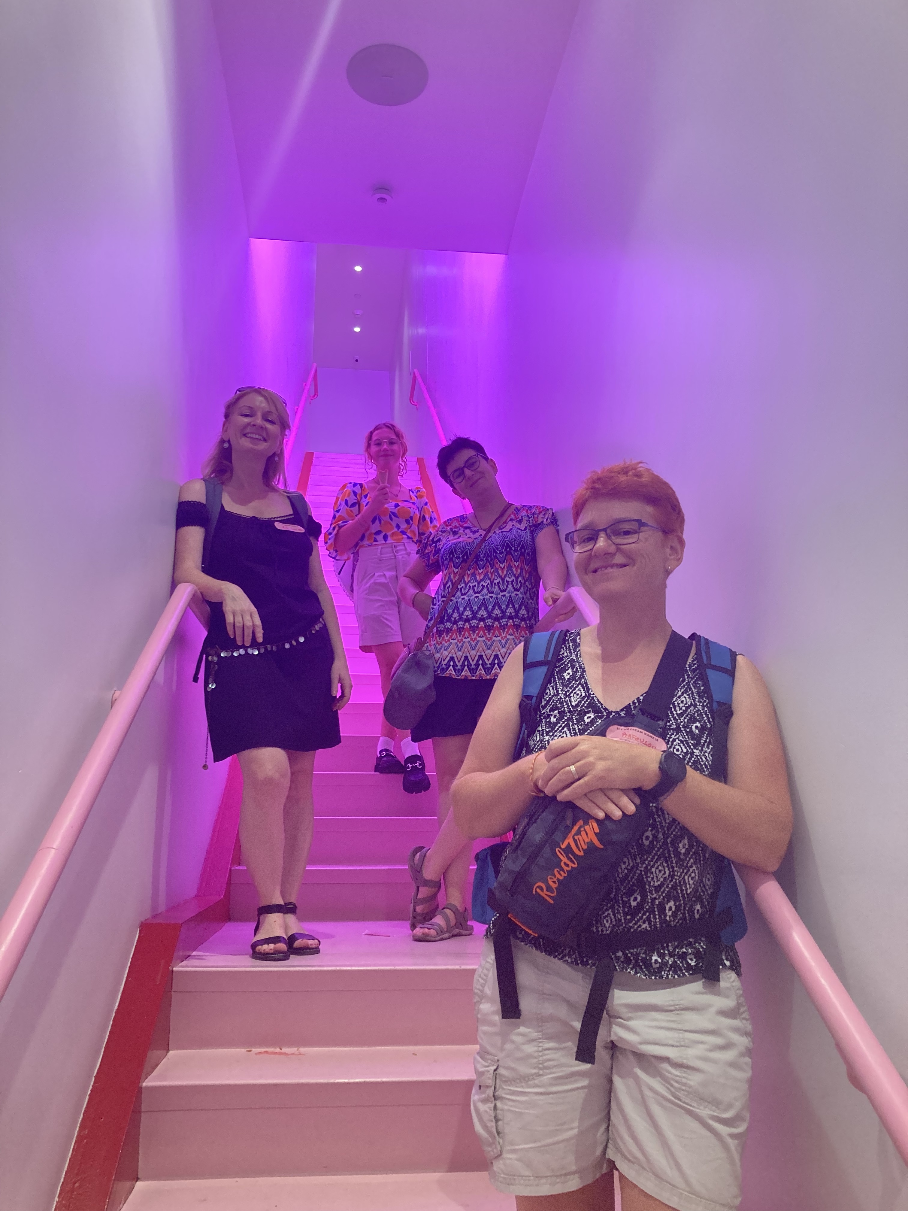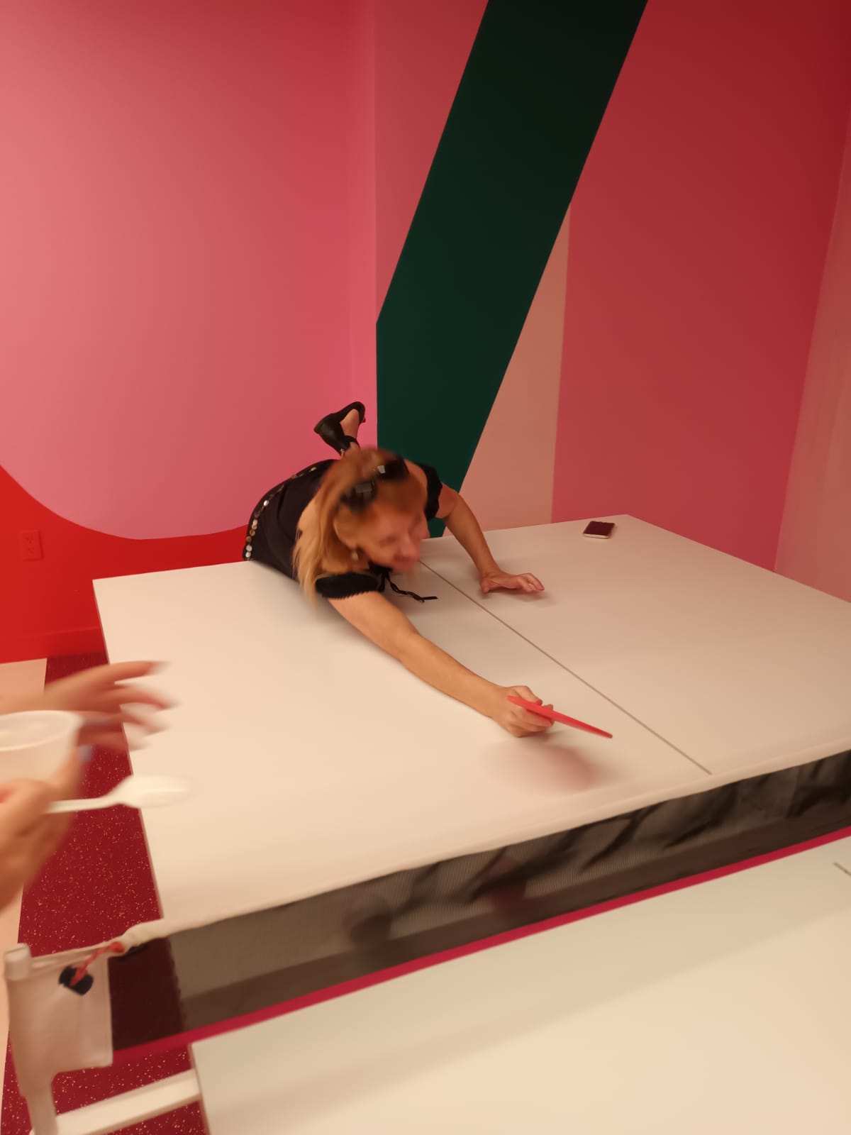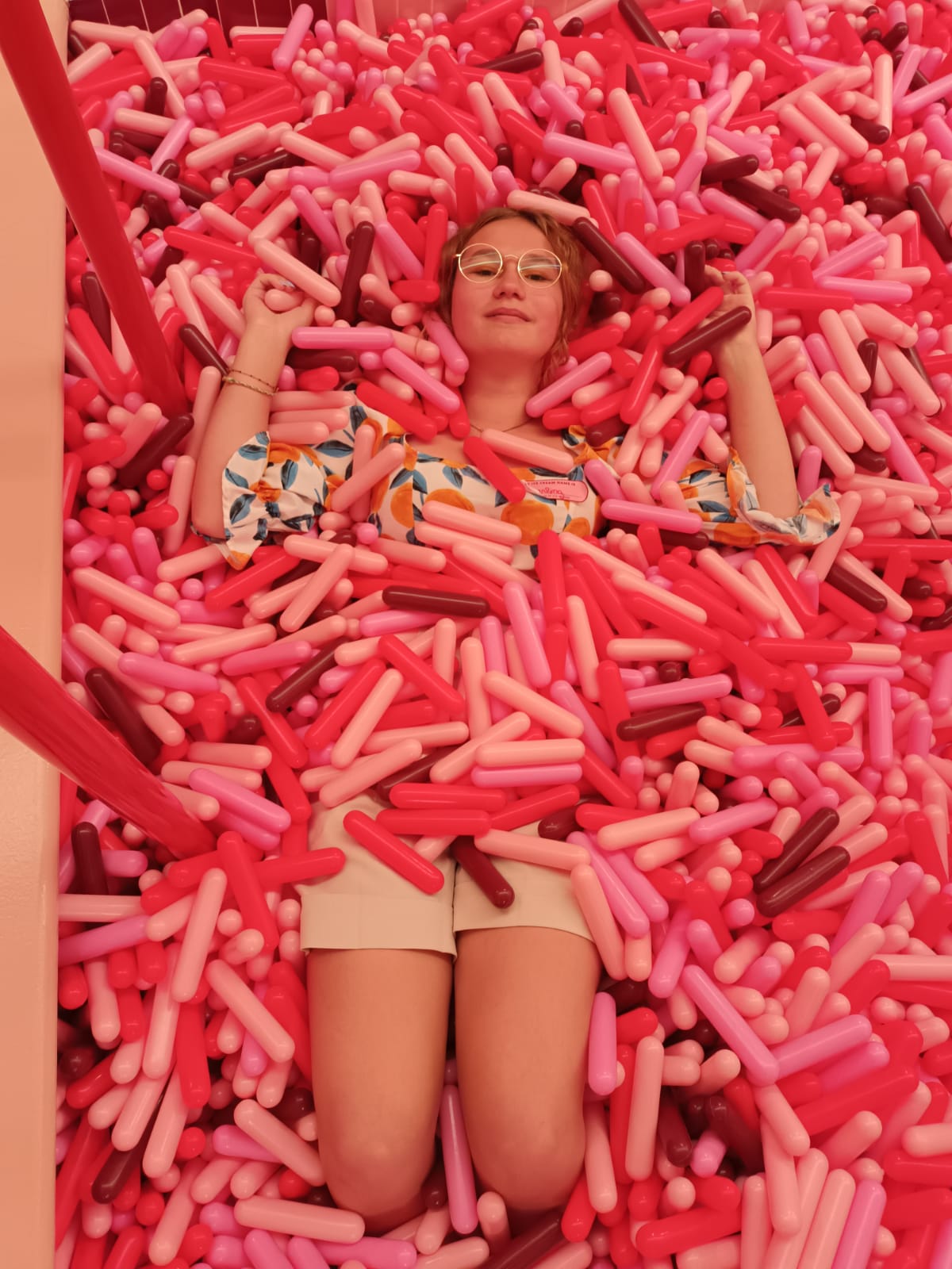 Ma nièce Charlotte avait eu une super idée et avait choisi d’aller au musée de la glace (Ice Cream Museum). C’était vraiment super ! Ce n’est pas à proprement parlé un musée, mais plutôt un lieu de divertissement où on vous offre des glaces dès que vous entrez dans une nouvelle pièce, autant vous dire que les filles étaient ravies… Oui, je ne m’inclus pas dans le lot car, pour ceux qui me connaissent bien, vous savez que je n’aime pas le froid, et ce, sous toutes ses formes, y compris la glace (bon, éventuellement un mini magnum aux éclats de noisettes et/ou amandes et caramel 😁, mais c’est le max !). Chaque pièce est décorée sur un thème lié à la gourmandise : glaces, gâteaux, cupcakes, bonbons… Et il y a aussi tout un tas d’activités à faire : balançoire, toboggan, piscine à balles (enfin, l’équivalent), ping-pong, il y a même une mini-discothèque !