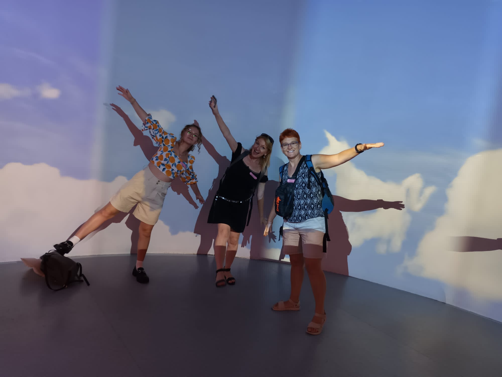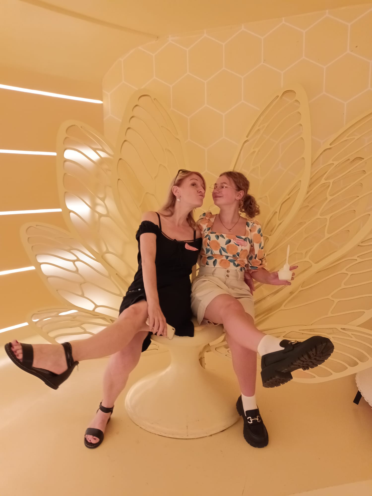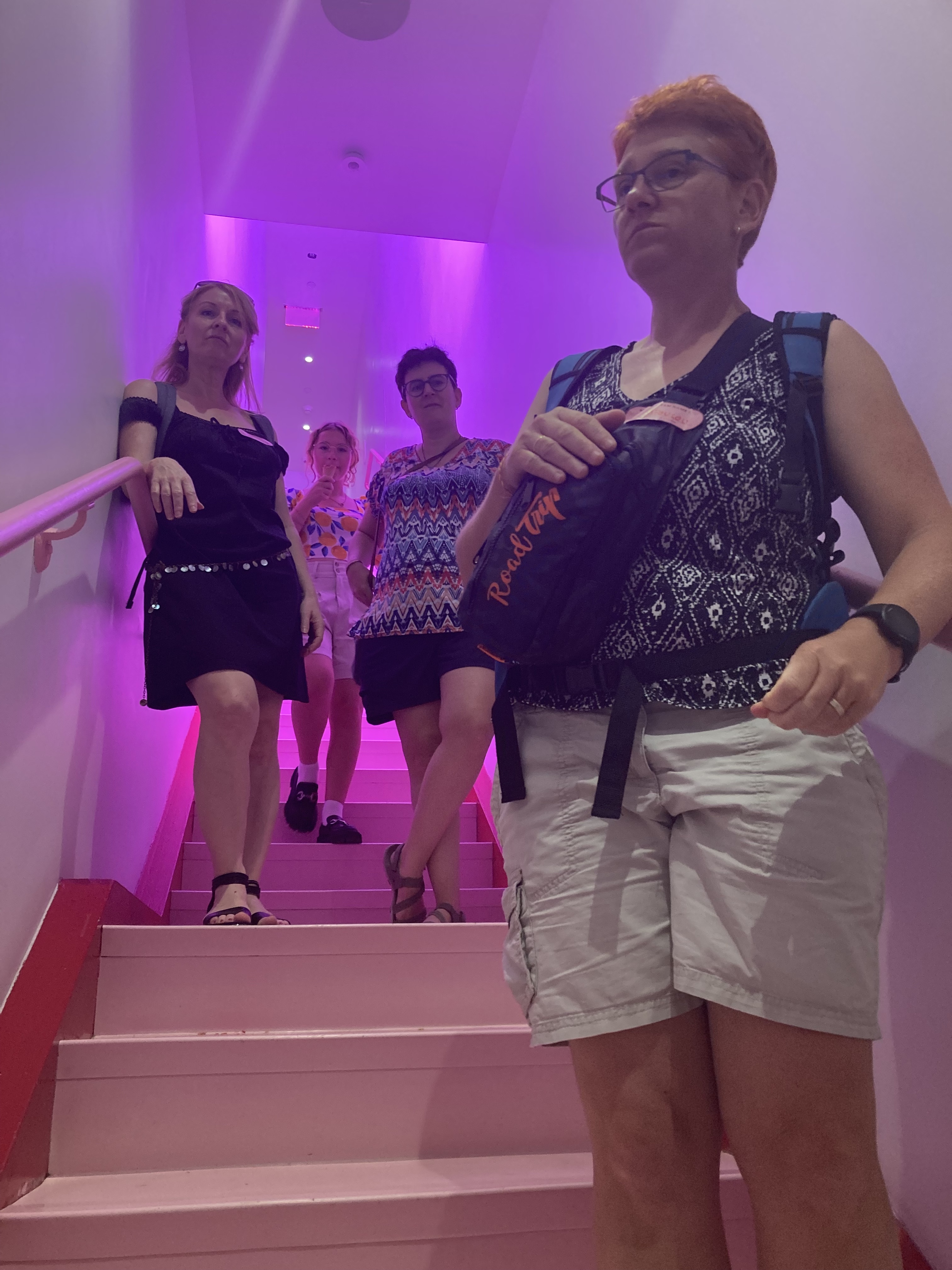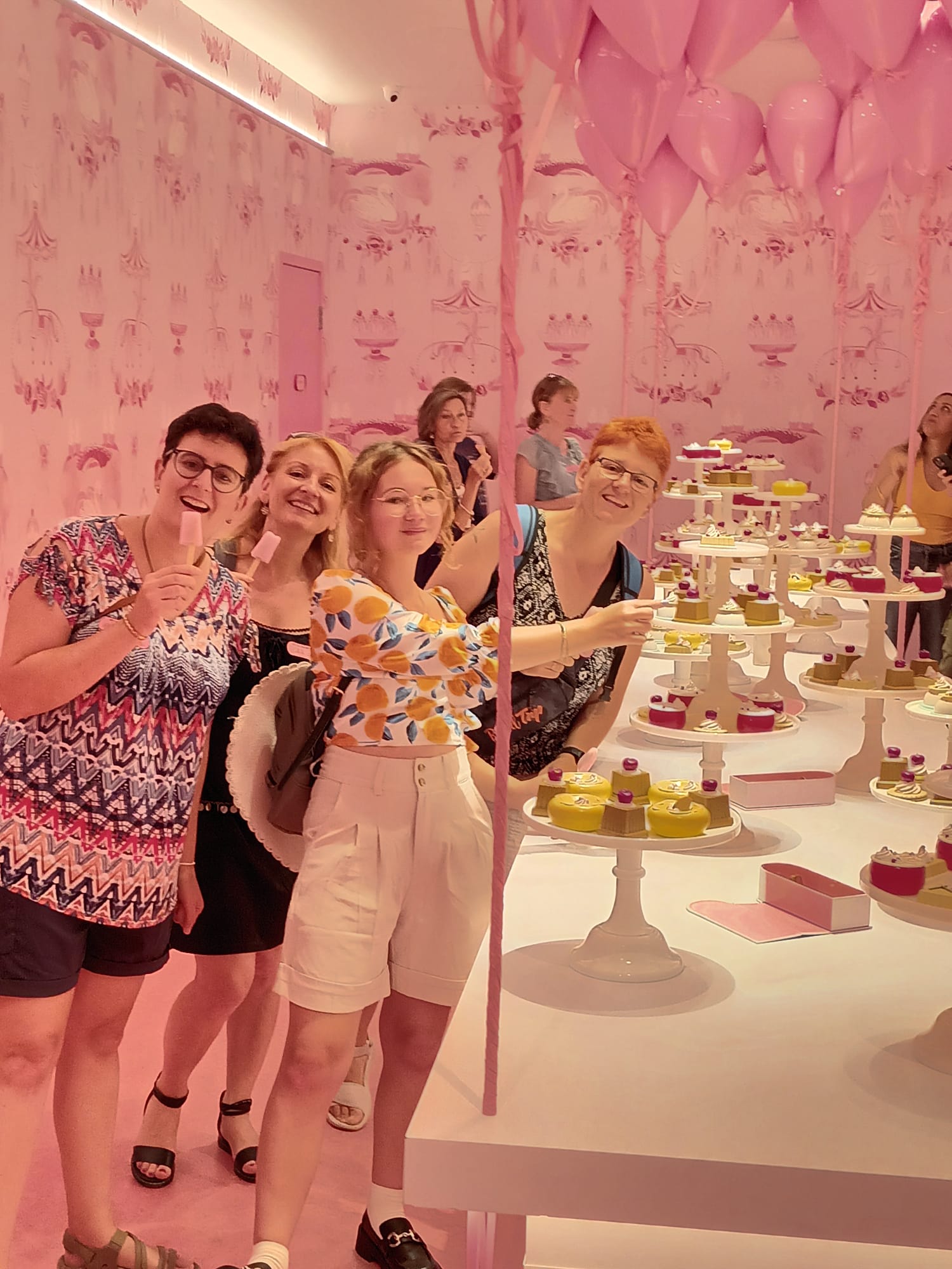 Ma nièce Charlotte avait eu une super idée et avait choisi d’aller au musée de la glace (Ice Cream Museum). C’était vraiment super ! Ce n’est pas à proprement parlé un musée, mais plutôt un lieu de divertissement où on vous offre des glaces dès que vous entrez dans une nouvelle pièce, autant vous dire que les filles étaient ravies… Oui, je ne m’inclus pas dans le lot car, pour ceux qui me connaissent bien, vous savez que je n’aime pas le froid, et ce, sous toutes ses formes, y compris la glace (bon, éventuellement un mini magnum aux éclats de noisettes et/ou amandes et caramel 😁, mais c’est le max !). Chaque pièce est décorée sur un thème lié à la gourmandise : glaces, gâteaux, cupcakes, bonbons… Et il y a aussi tout un tas d’activités à faire : balançoire, toboggan, piscine à balles (enfin, l’équivalent), ping-pong, il y a même une mini-discothèque !