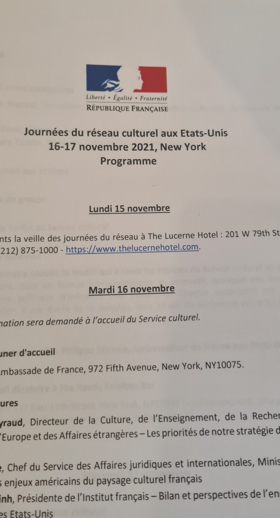 Le rendez-vous est donné sur un roof-top fermé en plein New-York, réservé spécialement pour le réseau culturel. Je suis impatiente de voir à quoi peut ressembler une soirée « ambassade ». Et évidemment, la question que tout le monde se pose : est-ce qu’il y aura des Ferrero ??!! Ou est-ce que ce mythe va également s’écrouler….